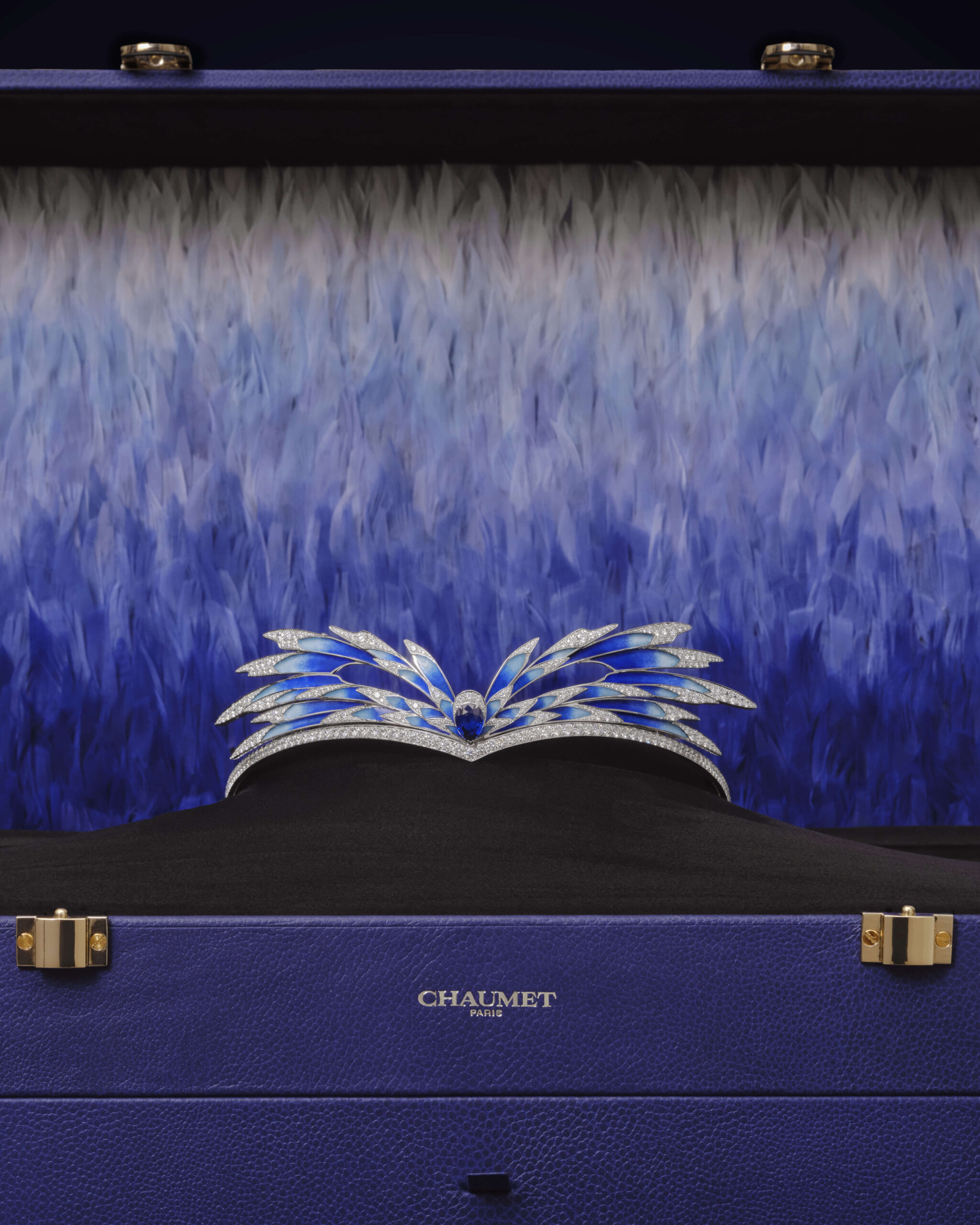 The gathering is comprised of 9 excessive jewelry creations unified by Chaumet’s signature blue, achieved by means of grand feu enamel paired with deep-toned Madagascar sapphires. Enamel — a method integral to the Maison’s historical past for almost 250 years — performs a central function to the gathering which permits the color to play each a structural and symbolic function within the assortment. Using degraded blues reinforces the sense of flight and transformation that underpins the gathering.