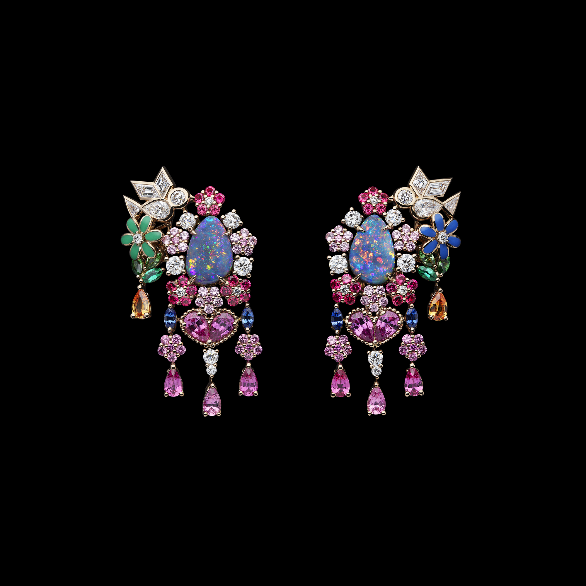 Central to the gathering is Castellane’s ongoing exploration of braiding — a recurring motif in her work for Dior. Right here, braided types are elongated into articulated pendants and fringed components that transfer vertically throughout necklaces, earrings and rings. These shifting traces reference each the construction of Dior ball robes and the natural movement of flowering stems, creating a way of lightness and rhythm throughout the items. Gold, diamonds and colored gem stones are organized as a nod to botanical landscapes, reinforcing Dior’s long-standing affiliation with gardens as a inventive (and symbolic) basis.