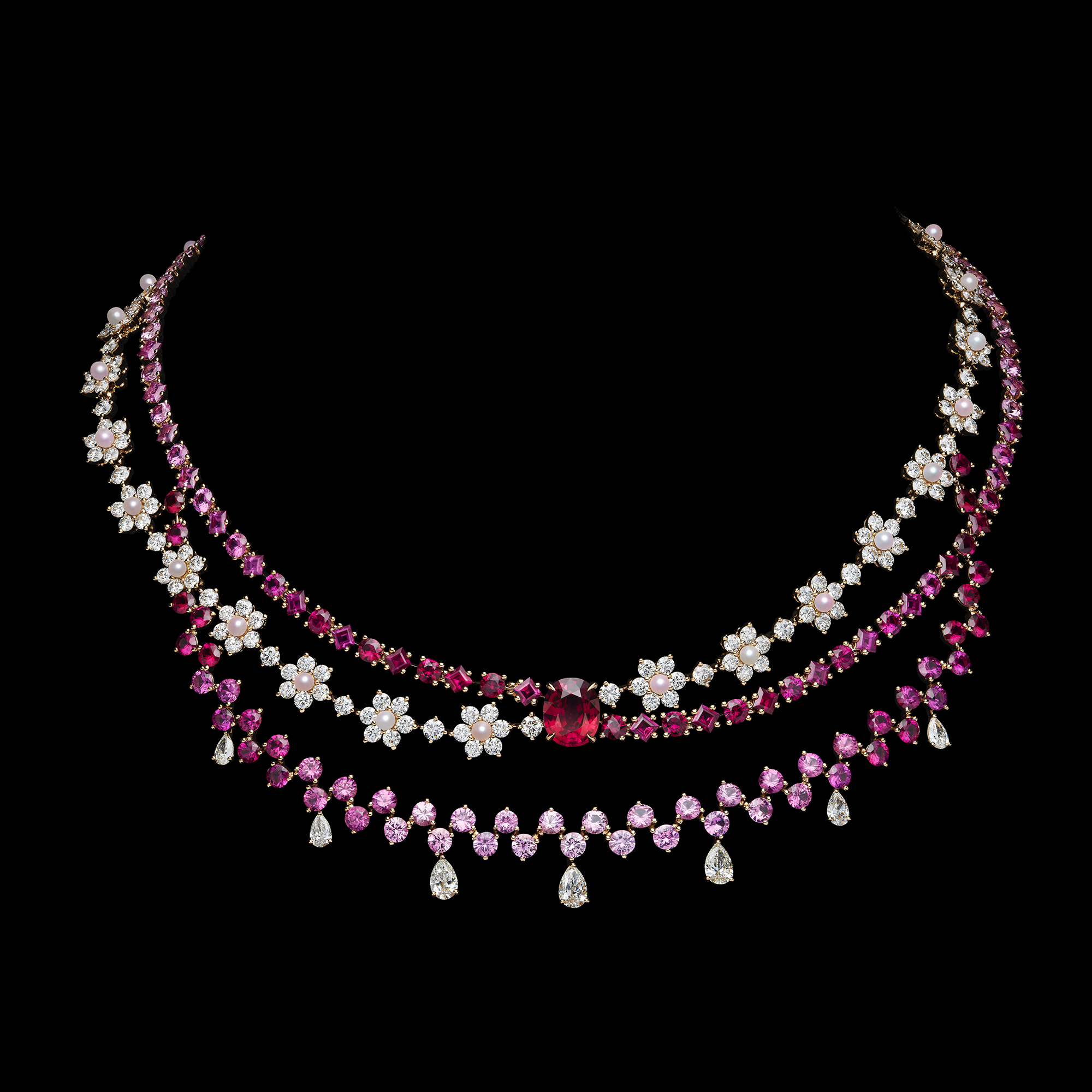 The gathering culminates in an announcement ring set with a 6.50-carat pink spinel, lower in a cushion form that opens right into a floral kind. As each a technical and symbolic centrepiece, the ring encapsulates “Belle Dior’s” broader intent to reinterpret Dior’s heritage motifs by means of up to date craftsmanship.
