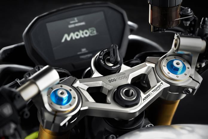 The restricted Moto2 model pays homage to the racing success of Triumph’s 765cc Triple. The Moto2 additionally options the Öhlins fork and clip-ons of the RX, in addition to different particular elements.