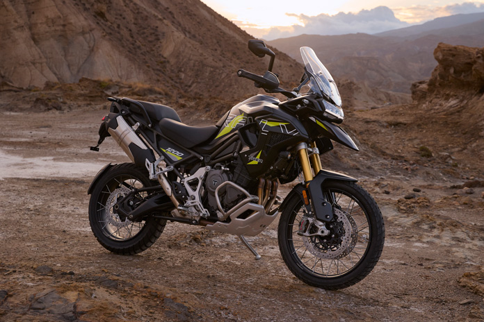 The Tiger 900 GT Professional Alpine has an MSRP of $17,495, and the Tiger 900 Rally Professional Desert is $17,995. The Tiger 1200 GT Professional Alpine might be out there for $21,895, and the Tiger 1200 Rally Professional Desert is $22,995.
