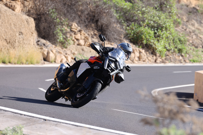 As soon as at pace, I used to be shocked on the lack of wind buffeting and the bike’s general stability. It felt planted, quiet, and calm – not phrases usually used to explain journey bikes, which might really feel a bit bouncy, have obscure monitoring at occasions, and wallow excessively throughout speedy course modifications. However the 1390 Tremendous Journey S Evo offered responsiveness and cornering accuracy akin to a sportbike.