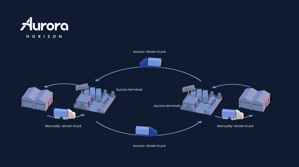 Aurora has an important weblog submit up about their upcoming Aurora Horizon service, which can function with their upcoming self-driving vans. Specifically, the submit options an important graphic describing “the center mile” of autonomous trucking.