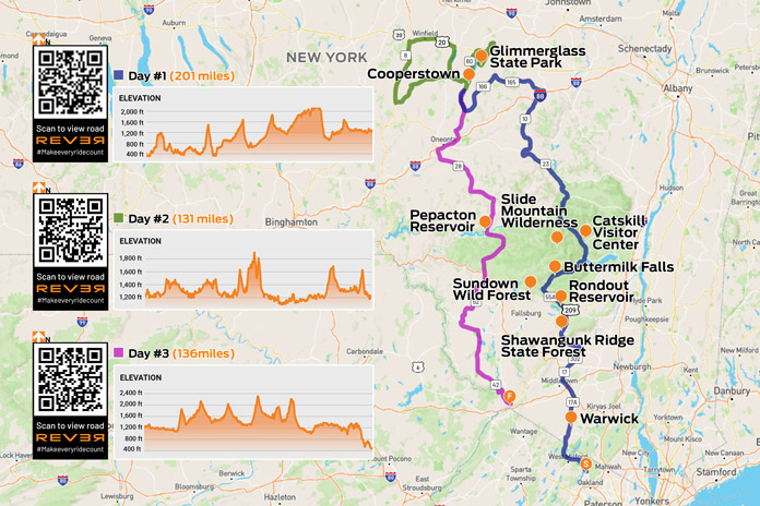 Scan QR codes above or click on Day 1, Day 2or Day 3 to view routes on REVER
