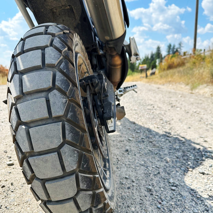Continental mentioned the TKC80 entrance/TKC70 Rocks rear combo would ship 70% of what a full set of TKC80s might do off-road, however for the kind of terrain I trip it feels extra like 90%. Aired right down to about 25 psi entrance and 29 psi rear, the TKC mullet combo is compliant and very succesful. The TKC70 Rocks, regardless of its mild-mannered look, grips sketchy options like facet slopes and unfastened rock tenaciously. Surprisingly, the place I really feel happiest to have the knobby TKC80 entrance is on unfastened gravel, the place its chunk offers confidence on a completely loaded ADV bike, particularly on downhill switchbacks.