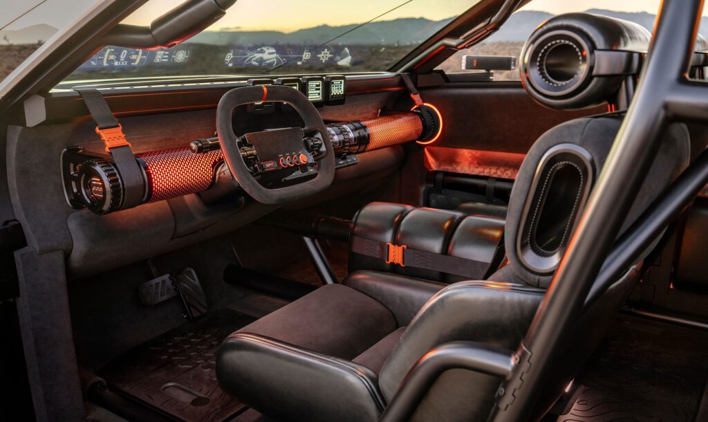 Inside gear features a bring-your-own-device digital interface, a full-width head-up show incorporating a rearview digital camera feed, and a practical roll cage construction. Wraparound seats function three-dimensional padding and four-point seatbelt programs. The Black Ember inside consists of black leather-based and Alcantara with orange accents.