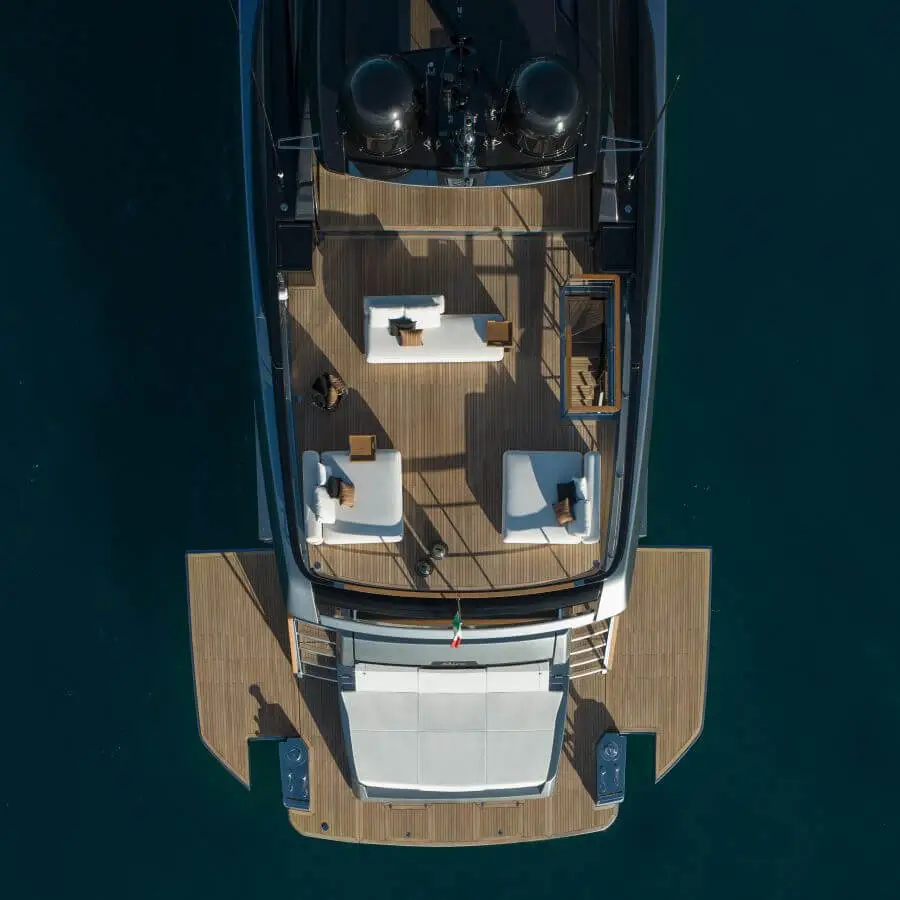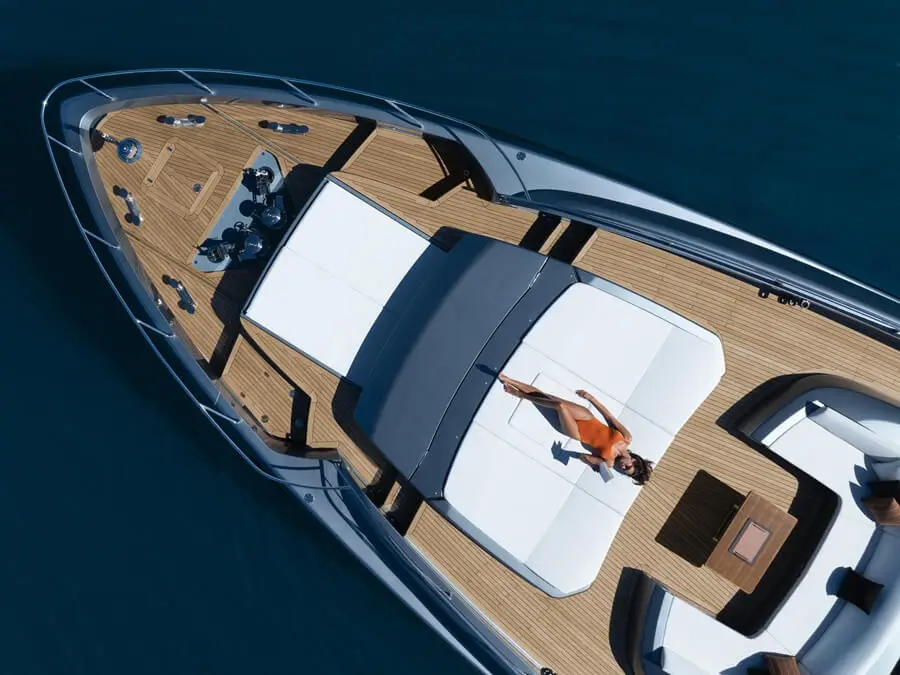 One of many key evolutions is the seashore membership. On the stern, a beneficiant 35sqm waterfront space folds out over the water, with lateral platforms on port and starboard that present each sunbathing space and water entry.